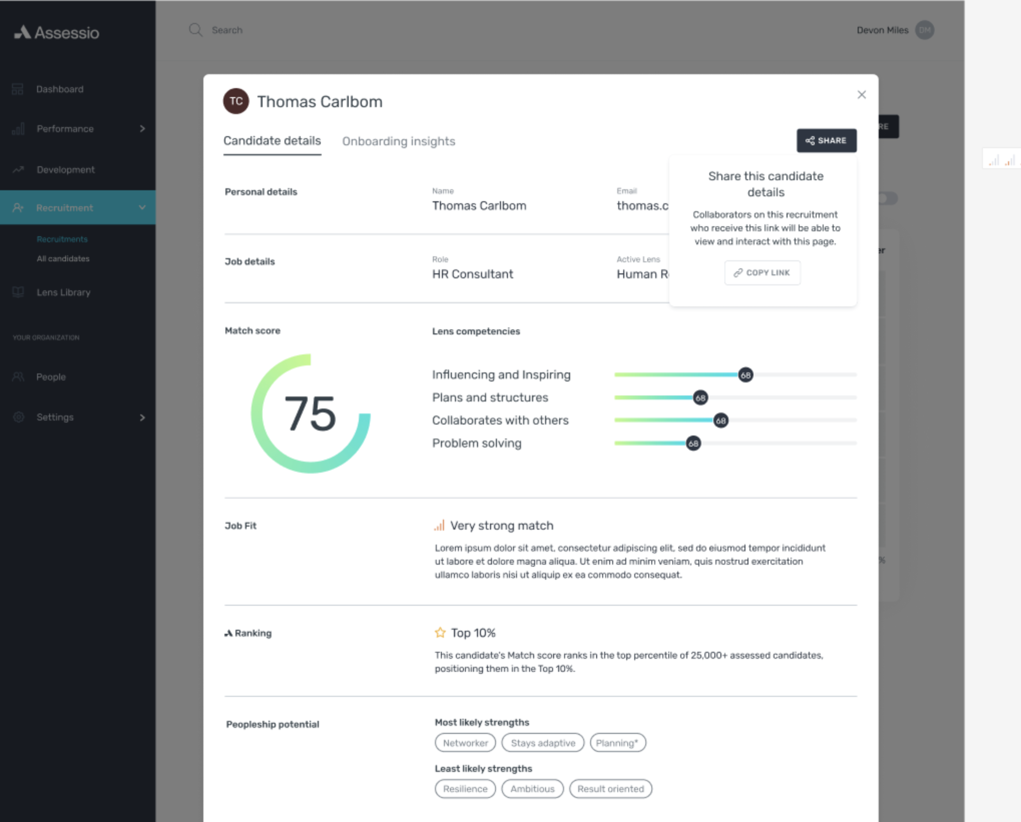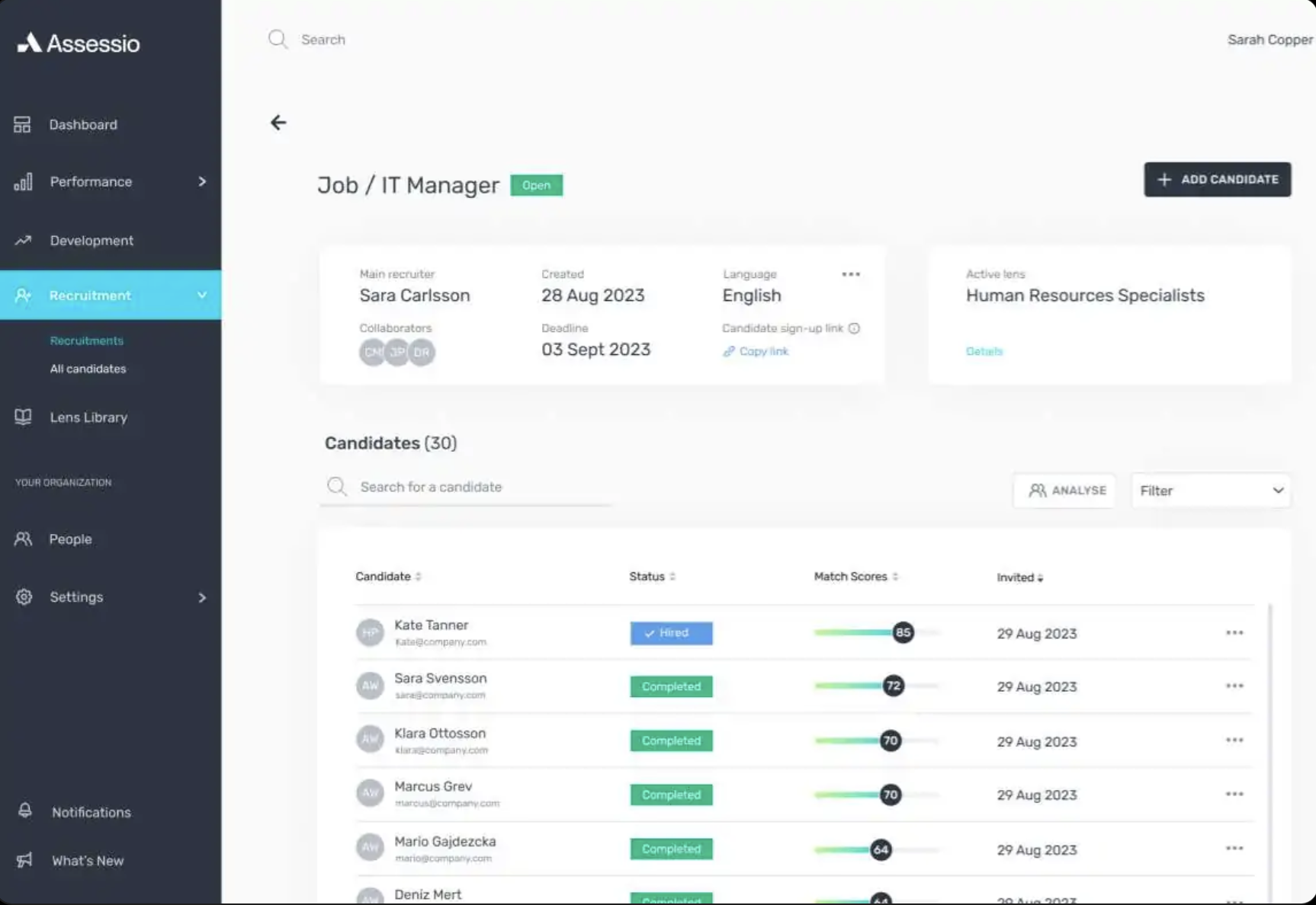 Assessio is the leading assessment company in the Nordic region. With us, you can make people decisions based on data and science. You can recruit and develop talent without wasting potential or time. The platform allows you to more easily and effectively match the right person with the right role, improve leadership and strengthen your teams.