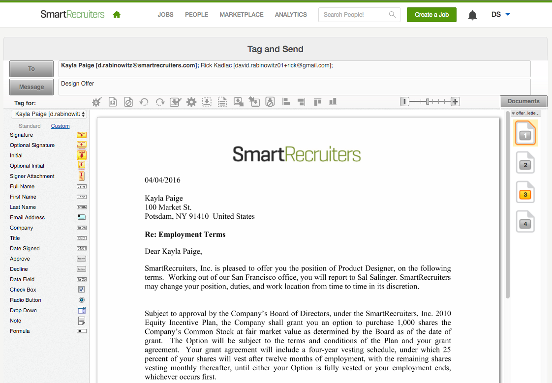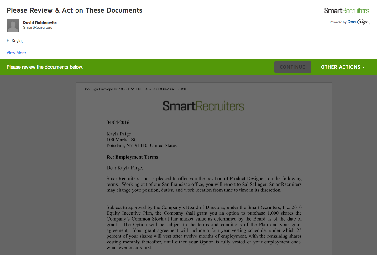 - Signing offers and other documents for candidates is nearly effortless