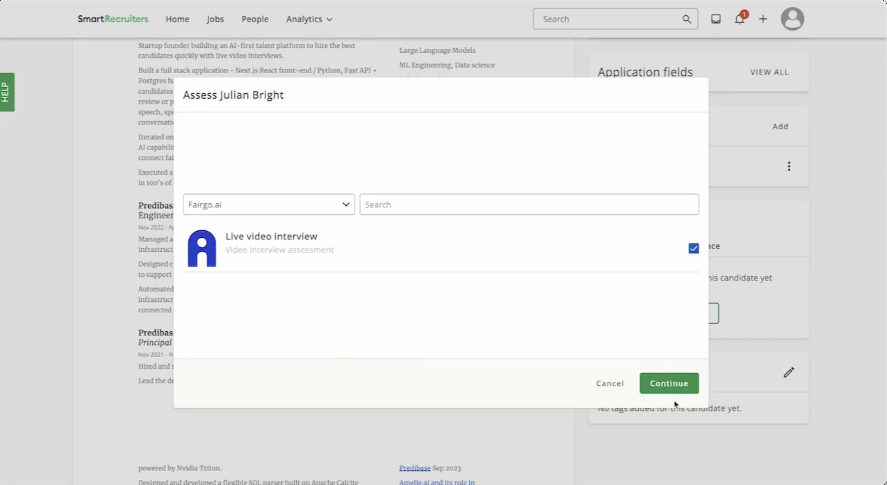 - A score and status will be updated in Smart Recruiters along with a link to fairgo.ai so hiring managers can review the full scoring details including the transcript and video