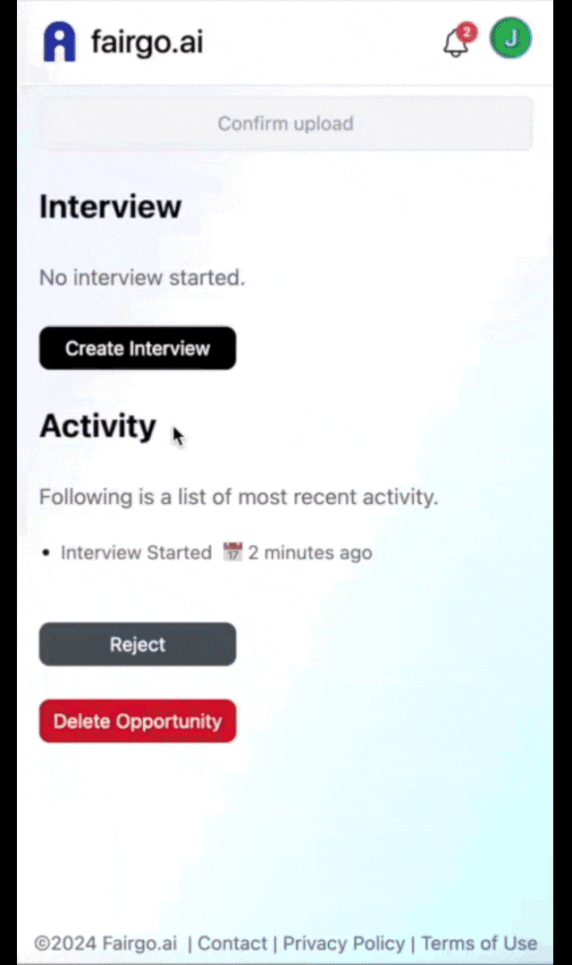 - Once complete an interview will be evaluated immediately by fairgo.ai