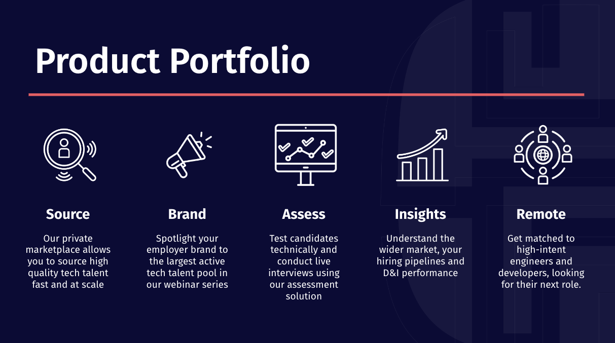 Directly source high-intent technical talent, build and shape your tech employer brand and streamline your internal hiring process through assessments, insights and high-touch support