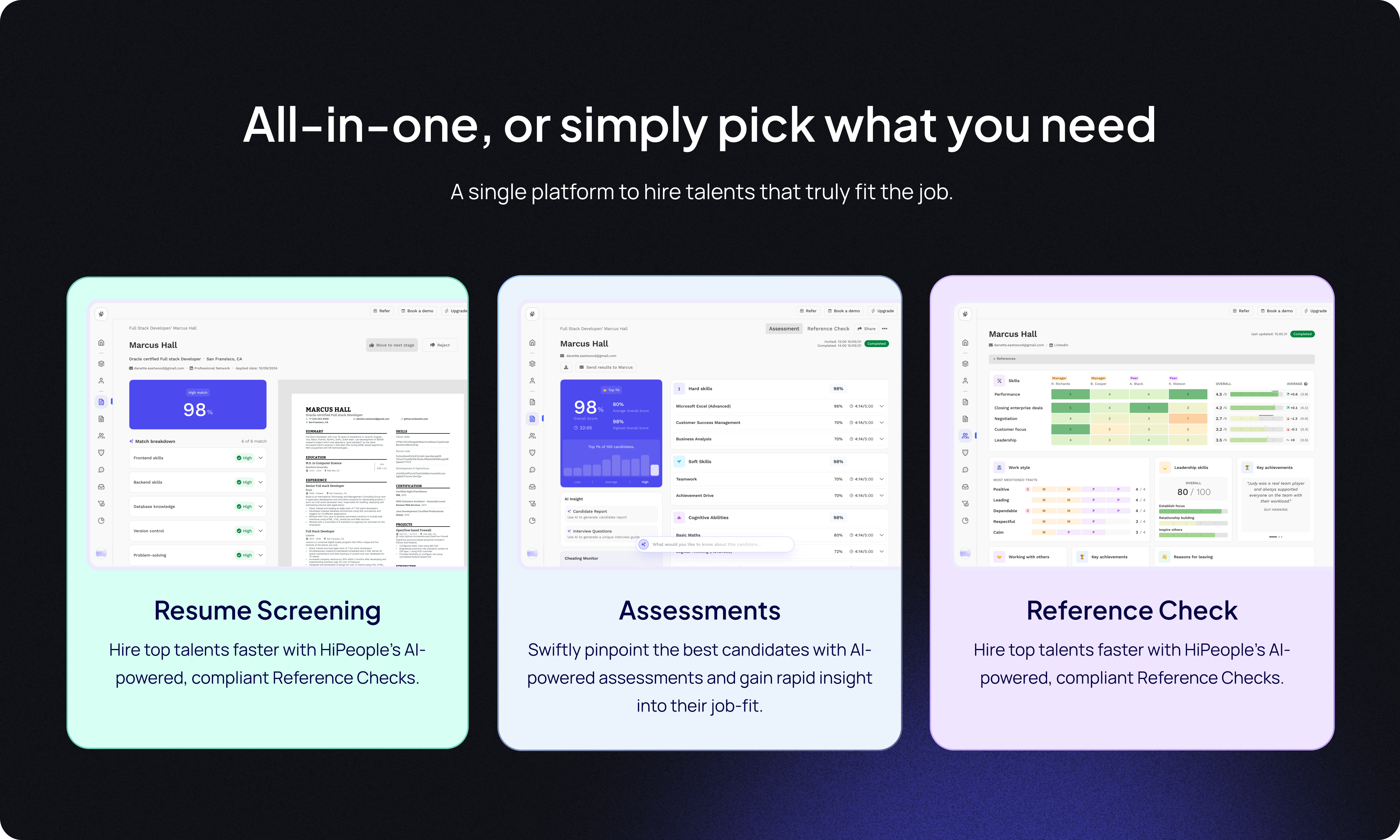 - Let our AI compile the best assessment or question to ask a reference for you.