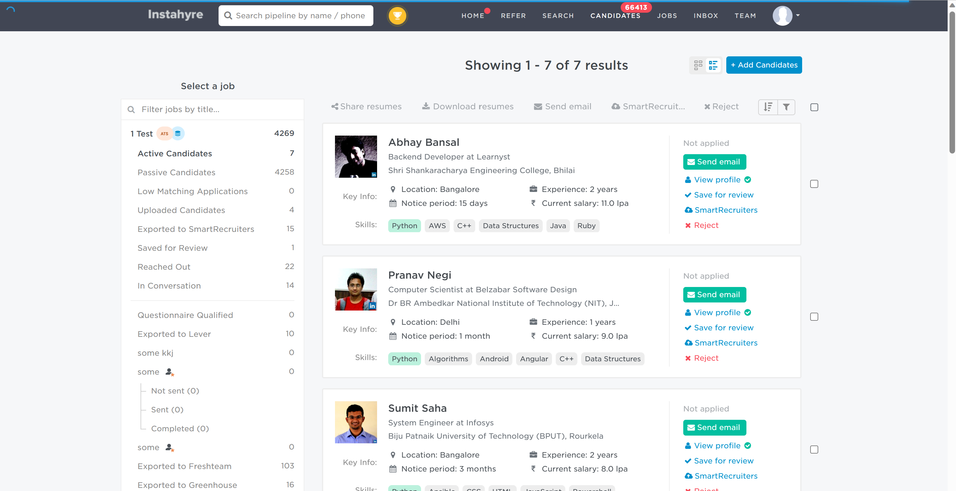 With the Instahyre<>SmartRecruiters Integration, Users will be able to export candidate profiles to Smartrecruiters from Instahyre in single click.