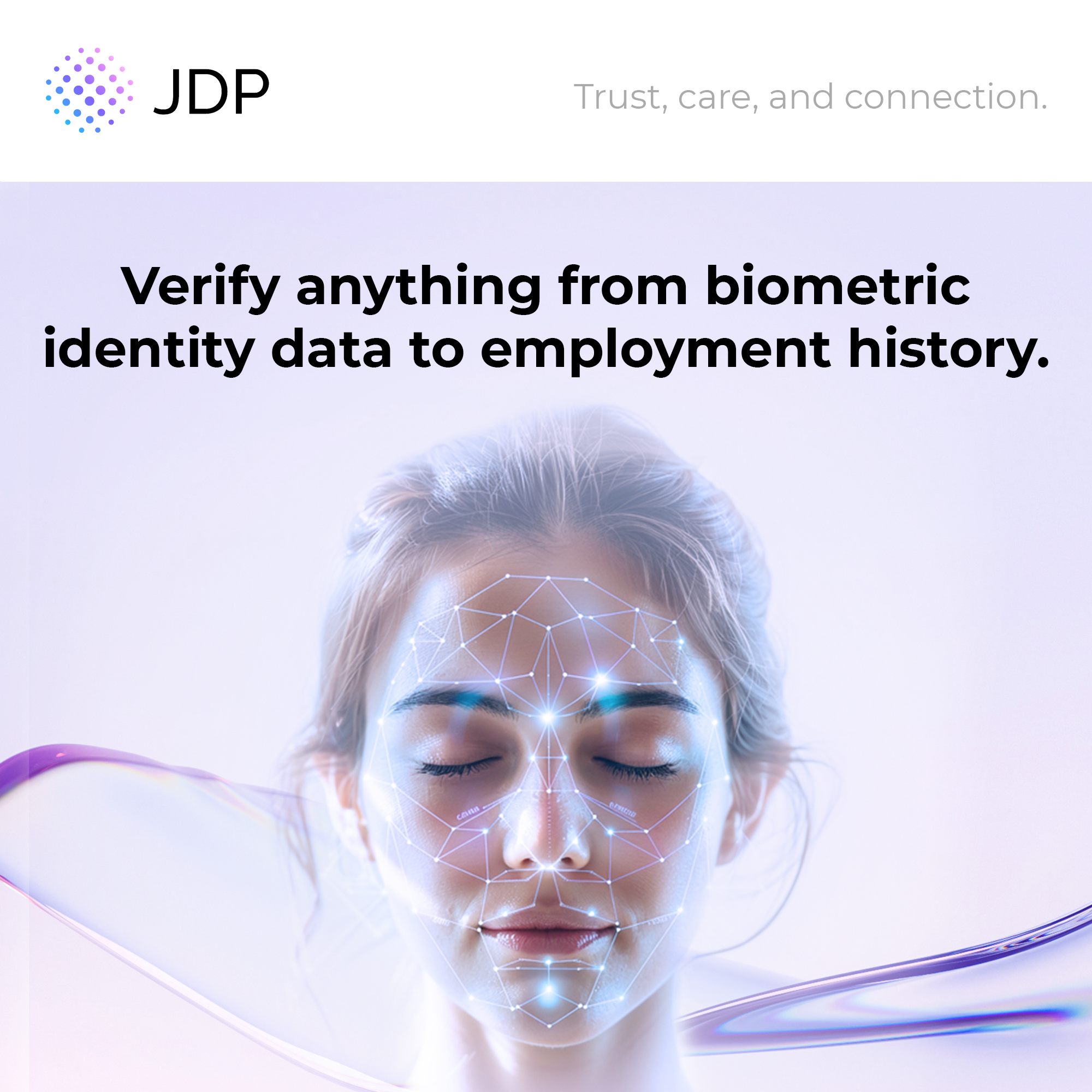JDP provides identity-verified background screening that starts with what matters most: knowing the person you’re screening is who they say they are. By verifying identity first, we ensure that every background check is built on a reliable foundation to eliminate data errors and reduce fraud. It’s the only way to know for sure, and it’s how we help our partners hire with trust and care.  We’ve built our reputation on precision, reliability, and service by investing deeply in technology to modernize screening and make it work better for today’s hiring demands. From biometric identity to AI-enhanced workflows, we help organizations move faster without compromising safety or compliance. With award-winning support and a collaborative, responsive approach, JDP partners with you to protect your people, reputation, and mission.