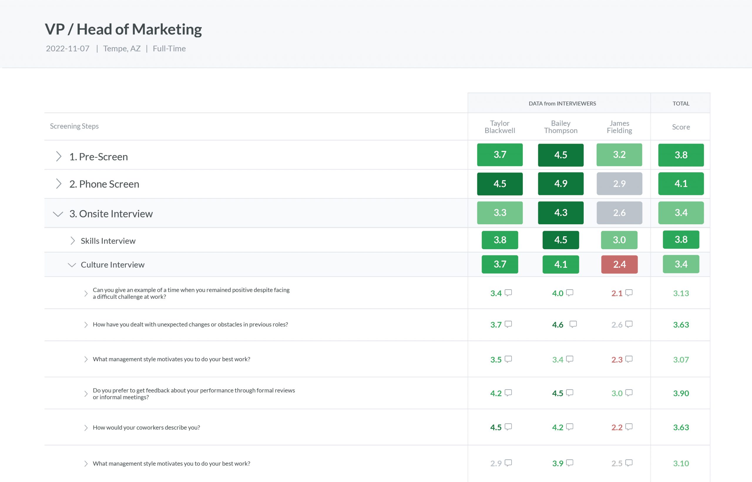 Aggregate all candidate insights into easy-to-use, customizable scorecards to increase the speed and accuracy of your hiring decisions