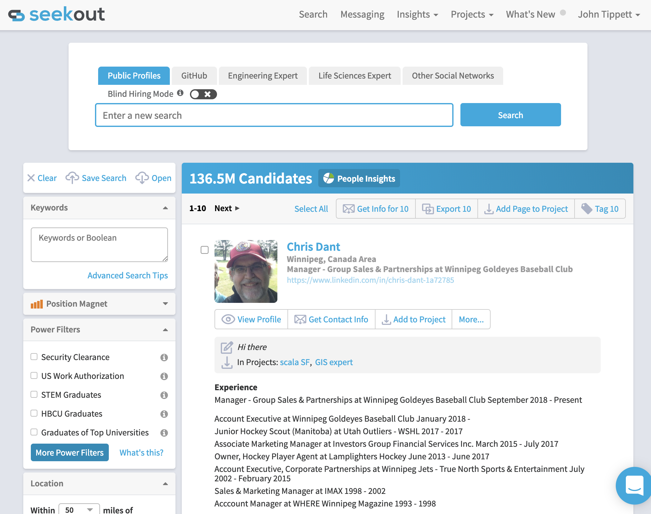 - Search and identify rich candidate profiles