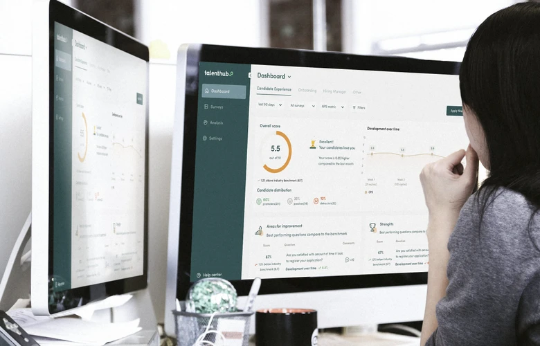 The platform empowers recruitment operations by aligning internal processes and fostering teamwork. Talenthub’s data and analytics dashboard, fueled by anonymous candidate feedback, equips recruitment teams with the insights needed to make informed decisions throughout the entire recruitment process. This includes sourcing, interviewing, hiring, and pre- & onboarding.