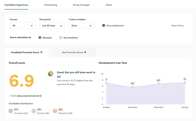 Collect feedback directly from those who drive the hiring efforts, create custom reports and objectives, and empower all team members to understand and contribute to exceptional Candidate Experience.