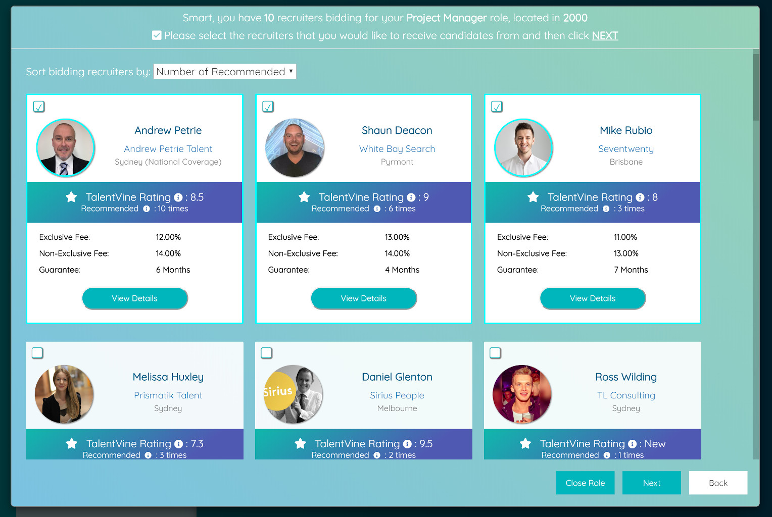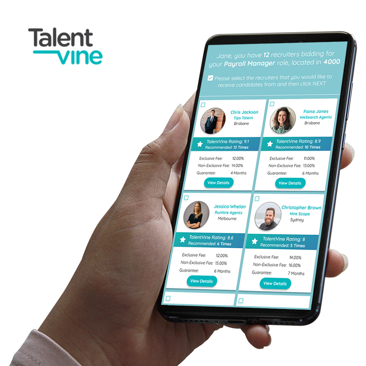 As we connect companies with recruiters that are already working on similar roles, this enables the employer to leverage off the time and costs that have already been invested into hiring similar talent. TalentVine’s metrics and ratings increase the chances of hiring exceptional talent by pointing you in the direction of the proven recruitment specialists that will be welcome support for any talent acquisition team.